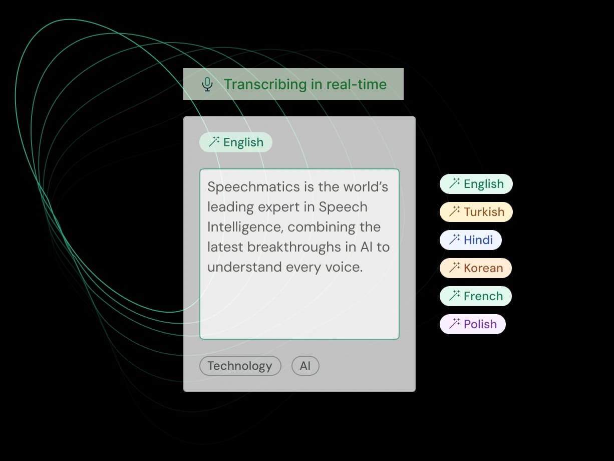 Transcribe, translate, interpret, analyze and understand the spoken word - in real-time - with Speech Intelligence.