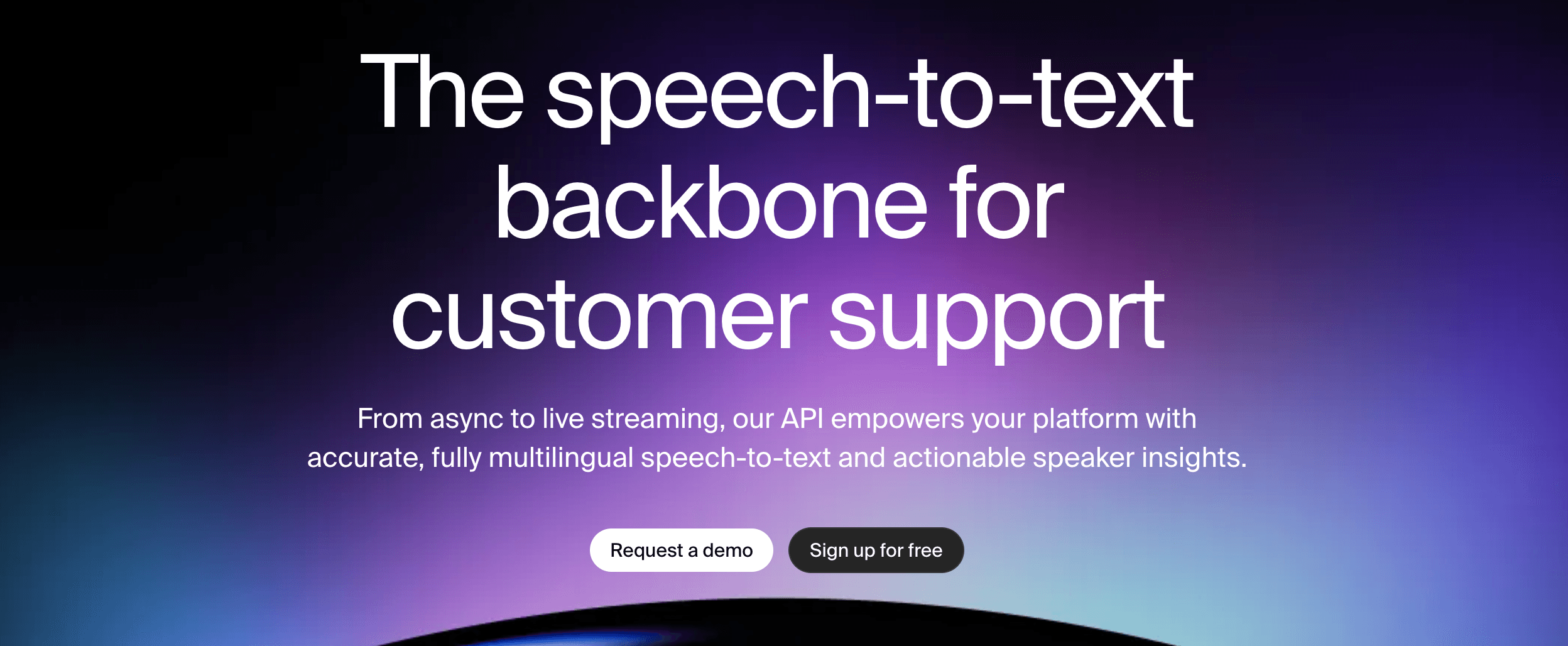 Best for: Developer teams building voice agents or contact center analytics who want explicit model choice, strong performance on difficult audio, and the option to self-host.