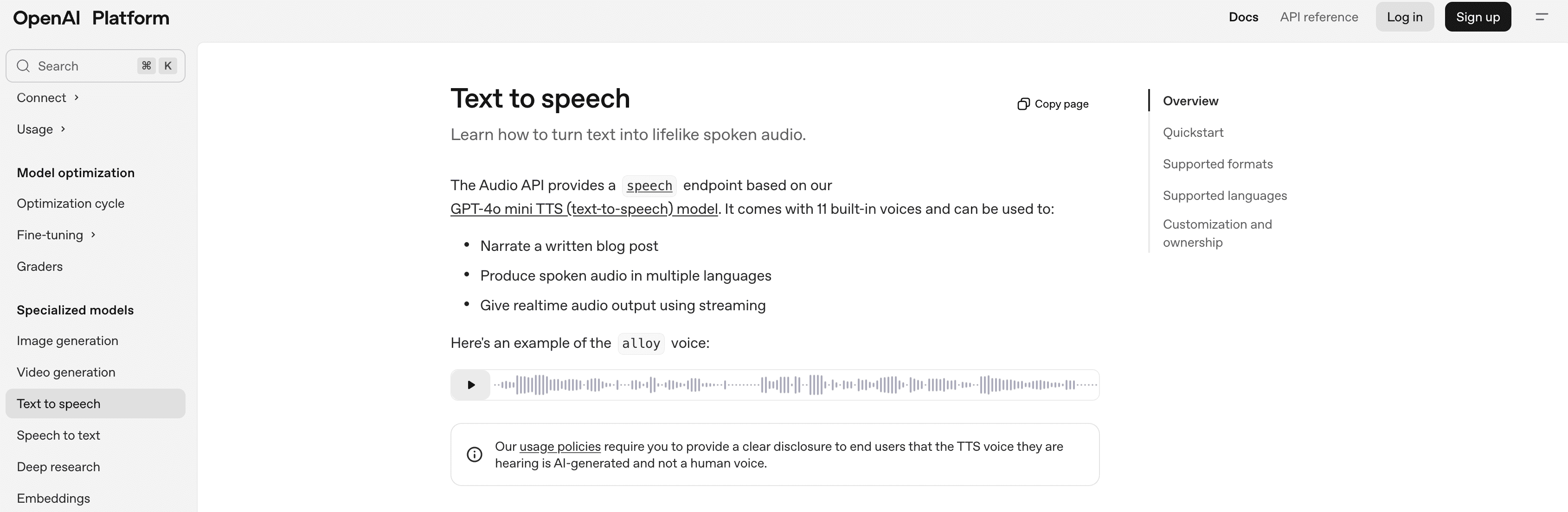 Who they are: OpenAI's foray into TTS comes as part of its broader AI platform. The OpenAI TTS API offers a selection of 6 high-quality voices (all preset synthetic voices, not user-cloned) that can speak in multiple languages.