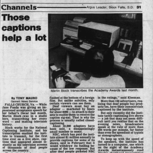 Live captioning came next, with the Academy Awards in 1982 becoming the first live event to have captions to accompany it.