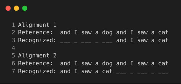 To illustrate how you align a reference and recognized transcript, here’s an example:
